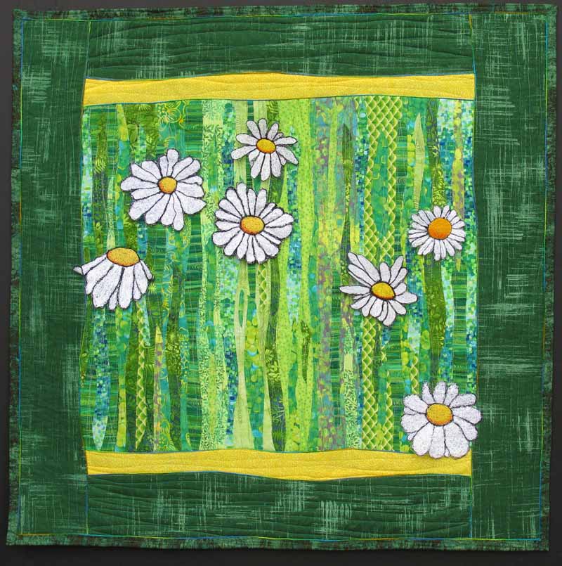 Walking through the peaceful woods, I discovered a meadow with Purple Meadow Rue (Thalictrum dasycarpum) in bloom. This beautiful plant is used in the production of anticancer drugs. It is my hope that this quilt conveys a sense of peace and hope for the viewer.